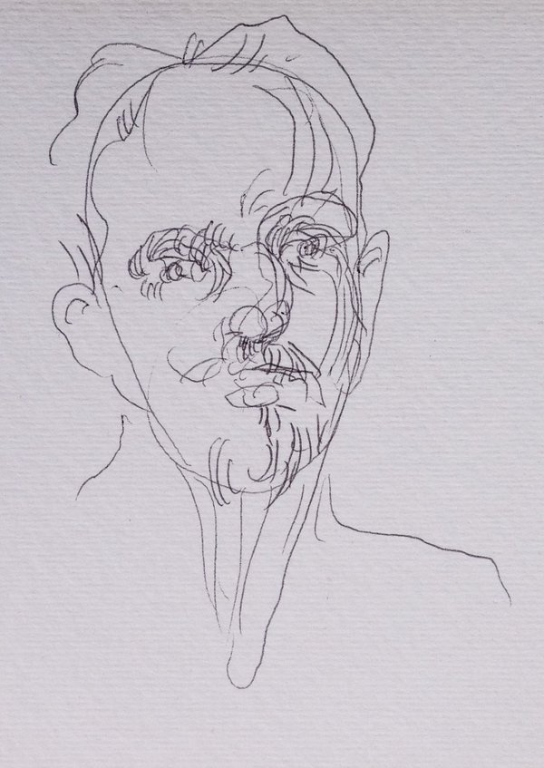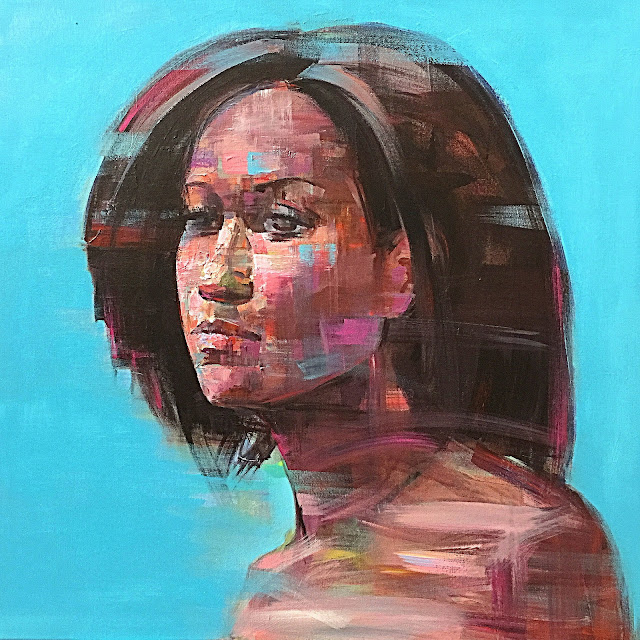 I'm currently working on a new portrait, which can go either hard-edged or less so. Let's see where it takes me.